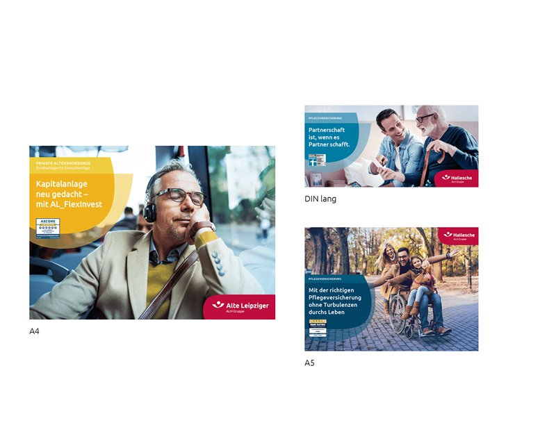 Broschürentitel, Plakate und Anzeigen sind aufmerksamkeitsweckende Kommunikationsmedien, die beim Adressaten Interesse wecken sollen. Über ein hohes Maß an Plakativität und einer fokussierten Abbildung von Inhalten wird eine schnelle Erfassbarkeit des Themas erreicht. Ein variables Layoutprinzip, im Zusammenspiel mit einer vielseitigen Farbpalette und außergewöhnlichen Formensprache, sorgt für eine abwechslungsreiche, einprägsame und merkbare Kommunikation, die nicht übersehen wird. Einige wenige Gestaltungsprinzipien gewährleisten einen konsistenten Markenauftritt, dienen dem Anwender als Orientierung und lassen gleichzeitig ausreichend Freiraum, um flexibel auf jede kommunikative Anforderungen reagieren zu können.