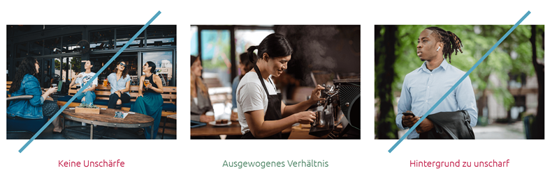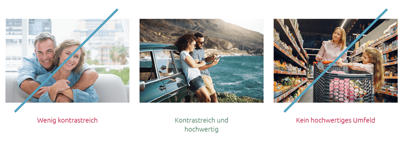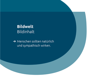 Unser Bildstil ist klar, fokussiert und reduziert. Bei Leitbildern sollten immer Menschen im Vordergrund stehen. Ausnahmen können bei gewerblichen Sachversicherungen möglich sein. Szenen aus dem Leben und bewegende Momentaufnahmen stehen für eine sympathische Darstellung von Menschen. Der Betrachter soll das Gefühl haben, mitten im Geschehen zu sein. Gewünscht sind Nahaufnahmen auf Augenhöhe (keine Frosch- oder Vogelperspektive), Personen sollten nicht von Hinten abgebildet werden. Bei Contentbildern sind auch Gegenstände, Naturaufnahmen und Food-Abbildungen möglich. Wenn Menschen eingesetzt werden gelten die gleichen Regeln wie bei Leitbildern.