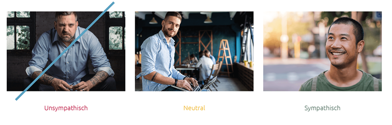 Jeder Betrachter hat eine eigene Vorstellung davon, was Bilder ausdrücken. Ob eine abgebildete Person sympathisch erscheint, liegt oft schnell auf der Hand. Wichtig sind der angenehme Ausdruck, eine offene Mimik und eine offene Körperhaltung.