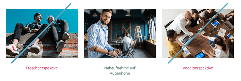 Der Betrachter soll den Eindruck gewinnen, mitten im Geschehen zu sein. Somit schließen sich extreme Perspektiven aus.
