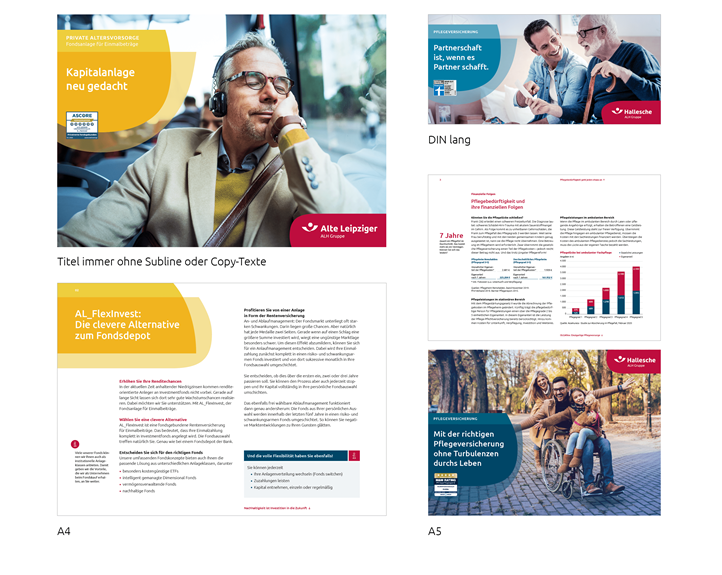 Die Digitalisierung eröffnet neue Chancen im Hinblick auf einen effizienten Vertrieb von Publikationen. Das schont nicht nur die Umwelt, sondern bietet auch ein Höchstmaß an Flexibilität und Zeitersparnis in der Bereitstellung von Informationen. Vor diesem Hintergrund werden die Broschüren der ALH Gruppe in jeglichen Größen im Querformat nach dem PDF-First-Ansatz umgesetzt. Die Broschüren sind so konzipiert, dass sie am Bildschirm gut gelesen und in Ausnahmefällen auch gedruckt, als klassisches Printprodukt, zur Verfügung gestellt werden können. Die Seitenanzahl muss durch 4 teilbar sein.